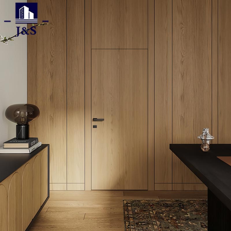 Những cánh cửa phòng ngủ ẩn bên trong này thể hiện bản chất của thiết kế tùy chỉnh cho cả ngôi nhà, hoàn toàn phù hợp với thẩm mỹ hiện đại ưa thích của giới trẻ. Tích hợp liền mạch vào tường, các cánh cửa loại bỏ các khung cửa truyền thống và các cạnh cồng kềnh, tạo ra một luồng hình ảnh rõ ràng, liền mạch làm mờ ranh giới giữa cửa và tường. Các bề mặt nhẵn, tông màu trung tính và tay cầm bằng kim loại bóng bẩy bổ sung cho đồ nội thất tối giản xung quanh và ánh sáng xung quanh dịu nhẹ, phản ánh lối sống bình yên, tinh tế. Thiết kế này ưu tiên sự gắn kết về mặt không gian và sự sang trọng tinh tế, khiến nó trở thành lựa chọn hàng đầu cho những chủ nhà trẻ, những người coi trọng sự đơn giản, chức năng và môi trường sống gắn kết, không lộn xộn. Nó biến những ô cửa thông thường thành những yếu tố tinh tế, đầy phong cách, nâng cao cảm giác tổng thể về không gian và sự hiện đại.